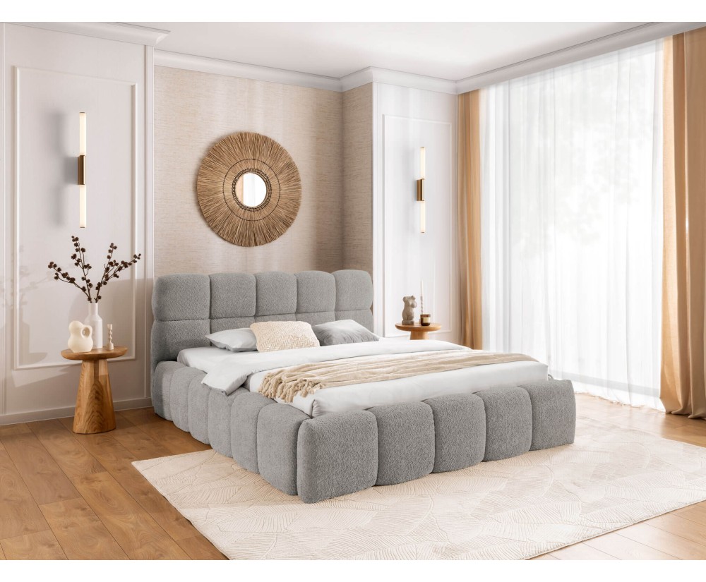 Das Polsterbett PRATO T12 ist eine einzigartige Kombination aus modernem Design, Funktionalität und Eleganz, die perfekt in jedes Schlafzimmer passt. Das Bett wird mit dem außergewöhlichen Stoff CORAL bezogen, der an klassichen Bouclé-Stoff erinnert. Seine subtile Textur zieht die Blicke auf sich und verleiht dem Bett einen eleganten und designorientierten Charme. Dieser weiche und luxuriöse Polsterstoff ist die perfekte Wahl für alle, die nach Materialien von höchster Qualität suchen, für Liebhaber von Komfort und den neuesten Trends.