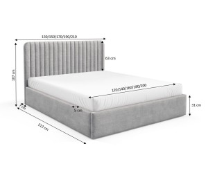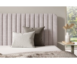 Das hohe, mit eleganten, vertikalen Nähten verzierte Kopfteil verleiht dem Bett einen zeitlosen Charakter und verbindet subtile Finesse mit moderner Eleganz. Die perfekte Lösung für alle, die Wert auf Stil und Komfort legen.