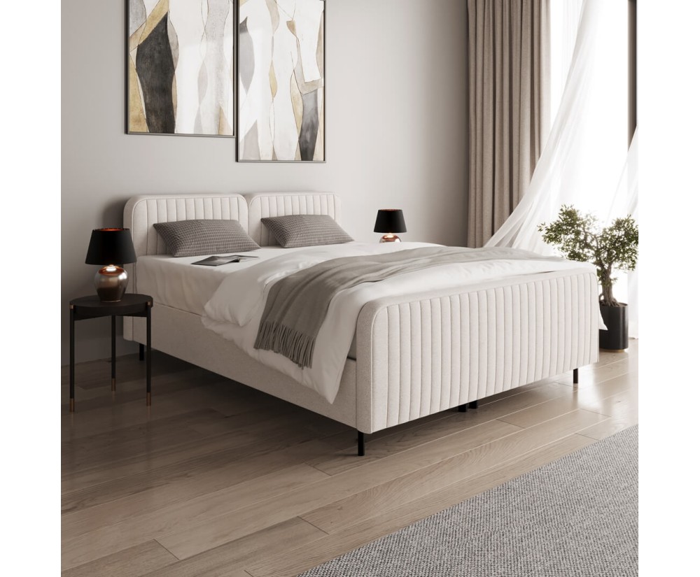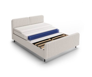 • Bettkasten: Der geräumige Bettkasten lässt sich mittels Gasdruckfedern öffnen, was einen einfachen und bequemen Zugang zum Stauraum ermöglicht;