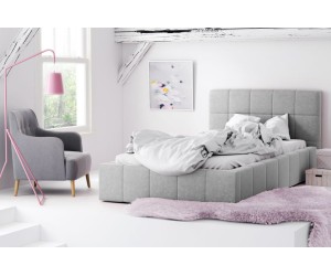 Das Bett IMPERIA S16 ist ein wunderschönes und modernes Polsterbett, das einen kuscheligen Schlafplatz für Jugendzimmer oder Schlafzimmer bietet. Das ansprechende hohe Kopfteil, das mit dekorativen Nähten verziert ist, verleiht dem Möbel viel Eleganz und eine optisch angenehme Ästhetik.