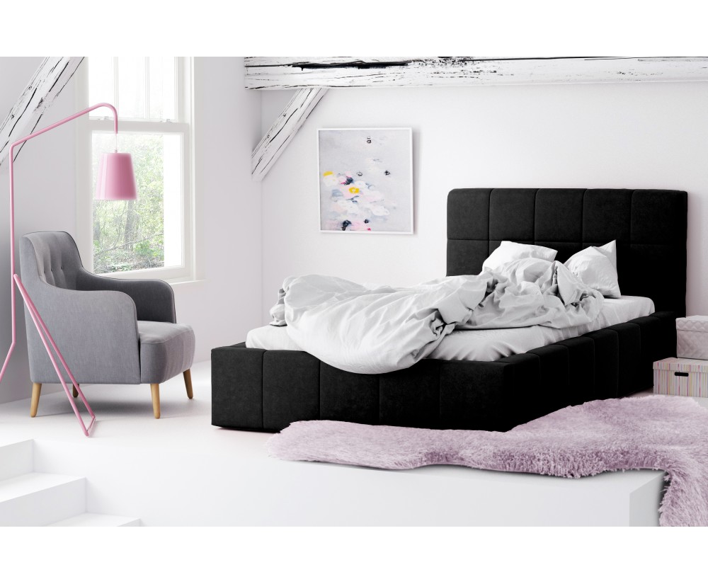 Das Bett IMPERIA S16 ist ein wunderschönes und modernes Polsterbett, das einen kuscheligen Schlafplatz für Jugendzimmer oder Schlafzimmer bietet. Das ansprechende hohe Kopfteil, das mit dekorativen Nähten verziert ist, verleiht dem Möbel viel Eleganz und eine optisch angenehme Ästhetik.