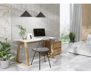 LINO - dieser stilvolle Schreibtisch im Loft-Design ist eine ideale Lösung für diejenigen, die nach einem modernen und funktionalen Möbel für ihr Interieur suchen. Die perfekte Kombination aus der weißen Tischplatte und dem Tischgestell im Farbton Artisan in eleganter Schrägstellung verleiht dem Möbelstück einen besonderen Charakter, der sich in verschiedene Raumarrangaments hervorragend einfügt. Dieser Schreibtisch bietet eine große, komfortable Arbeitsfläche für effizientes Arbeiten und Lernen und eignet sich somit perfekt für ein Büro, Heimbüro oder Jugendzimmer.