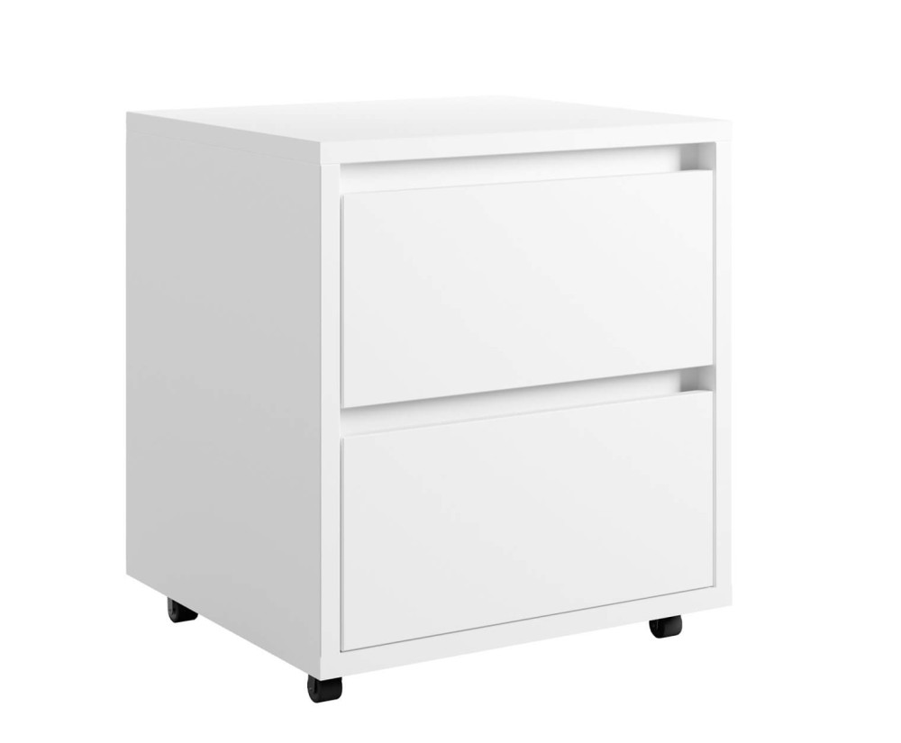 Der weiße Rollcontainer verfügt über zwei Schubladen, die ausreichend Platz für verschiedene kleinere Büroutensilien bieten. Dank den leichtgängigen Rollen kann der Container an die gewünschte Stelle auf einfache Weise geschoben werden. Hergestellt aus hochwertiger Laminatplatte. Die sorgfältige Ausführung garantiert eine lange Lebensdauer.