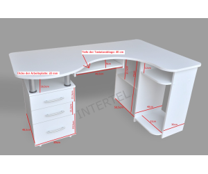 Schreibtisch MAKSYM ist ein Eckschreibtisch mit drei geräumigen Schubladen für Bürozubehör und Regalen für Bürogeräte. Er verfügt über ausziehbare Tastaturablage und eignet sich perfekt für das Büro, das Heimstudio und das Jugendzimmer. Die weiße Farbe hellt den Raum auf und verleiht ihm Frische. Hergestellt aus hochwertiger laminierter Platte, veredelt mit ABS-Kante.