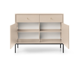 ARON ist eine moderne Kollektion von Möbeln im Loft-Stil. Die Kollektion passt zu den aktuellen Trends. Die Kommode ARON MKSZ104 zeichnet sich durch zeitloses Design und einfache geometrische Form aus, erhältlich in marineblau und sandbeige. Minimalistische Griffe in goldener Farbe unterstreichen den Charme des Möbels. Es handelt sich um modulare Möbel, die frei kombiniert werden können.