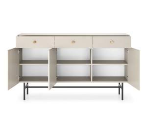 Die Kollektion EMI bietet ein Möbelset für das Wohnzimmer im Farbton beige, bestehend aus vier Elementen: drei Kommoden von unterschiedlicher Größe und einem RTV-Schrank. Diese elegante Kollektion wurde für Wohnzimmer und Schlafzimmer konzipiert. Langlebige Laminatplatte bietet Robustheit und Haltbarkeit. Die Metallbeine betonen einerseits die Modernität, andererseits den Loftcharakter, wodurch das Möbelset sich perfekt in die Trends der Innenarchitektur einfügt. Die goldenen Griffe werten die Optik der Möbel auf und verleihen ihnen einen eleganten letzten Schliff. Eine perfekte Wahl für Liebhaber der Funktionalität und zugleich eines originalen und modernen Designs im Loft-Stil.