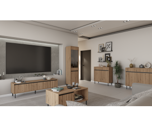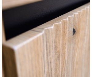 Der TV-Schrank ASTIR, Breite 178 cm, mit Schubladen, vereint perfekt das moderne Design mit der unübertroffenen Funktionalität. Seine minimalistische Form mit sorgfältig gefrästen Lamellen-Fronten führt in den Innenraum eine neue ästhetische Qualität ein. Der subtile Farbton Eiche Evoke wird mit schwarzen Akzenten bereichert, was eine ideale Farbkombination bildet. Gerade schwarze Metallbeine sind nicht nur stabil und tragfähig, sie verleihen der ganzen Konstruktion viel Leichtigkeit.