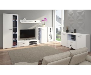 Die 4-teilige Wohnwand ROMBO verleiht Ihrem Wohnzimmer ein modernes Flair, in drei Farbvarianten zur Auswahl. Das Möbelset wird aus der hochwertigen Laminatplatte gefertigt. Zum Set gehören: eine Hochvitrine, eine niedrige Vitrine, ein hängendes Wandregal und ein TV-Schrank.