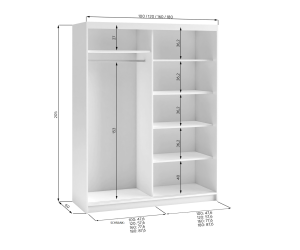HAVANA H 100 - ist ein kompakter Schiebetürenschrank in drei Farbvarianten zur Auswahl. Dieser platzsparende aber geräumige Schrank ist mit Einlegeböden und einer Kleiderstange ausgestattet, so dass er viel Platz für Kleider, Jacken, Mäntel, Handtücher oder Bettwäsche bietet und für ein aufgeräumtes Ambiente sorgt. Der Schrank wurde im Hinblick auf Praktikabilität und Funktionalität entworfen. Das Möbel ist aus einer laminierten Platte mit einer Dicke 16 mm gefertigt, deswegen ist es stabil, robust und widerstandsfähig. Die Kanten werden mit ABS-Umleimer geschützt, was eine ästhetische Optik und einen zusätzlichen Schutz vor Beschädigungen gewährleistet. Die Führungsschienen aus Aluminium garantieren eine lange Lebensdauer. Die verpiegelte Front vergrößert optisch den Raum und verleiht dem Möbel eine visuelle Leichtigkeit.