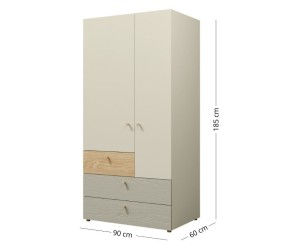Sorgen Sie für Ordnung und Ästhetik im Kinderzimmer. Der Kleiderschrank JUKI 02 ist eine gute Wahl – durchdacht, geräumig und einfach schön.