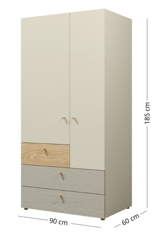 JUKI 02 ist ein Kleiderschrank, der den verfügbaren Platz optimal nutzt. Perfekt für ein Jugendzimmer - bietet der Schrank eine durchdachte Innenaufteilung mit einer Kleiderstange auf der linken Seite und vier Innenfächern auf der anderen Seite. Drei zusätzliche Außenschubladen ermöglichen einen schnellen Zugriff auf alltägliche Kleinigkeiten.